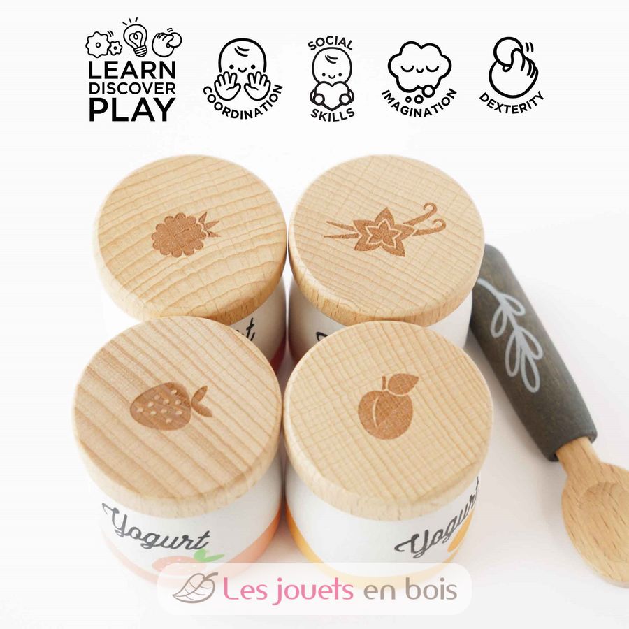 Set di 4 yogurt in legno, cibo giocattolo in legno per bambini da Le Toy Van. Riferimento TV340.