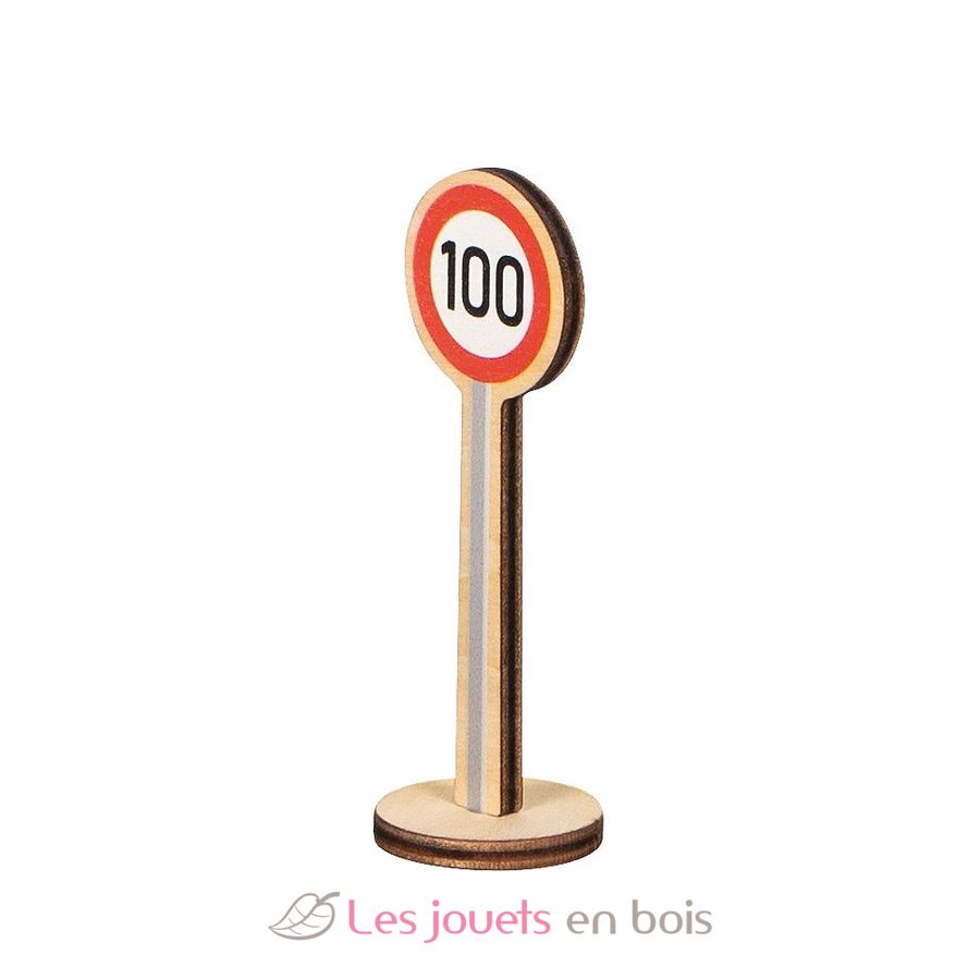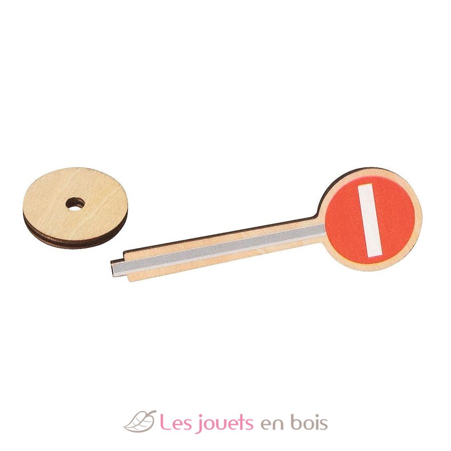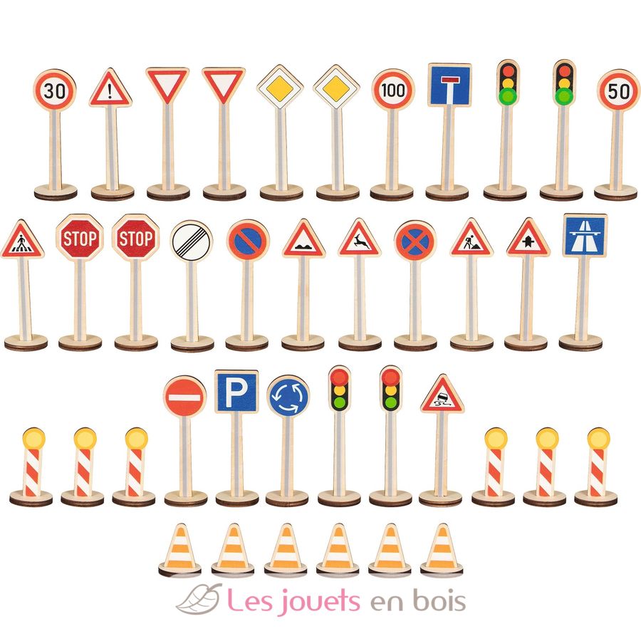 Il set di segnali stradali è composto da 40 segnali stradali, sufficienti per equipaggiare la rete stradale di un’intera città. I cartelli e i supporti sono realizzati in compensato.