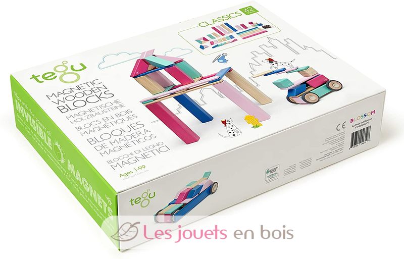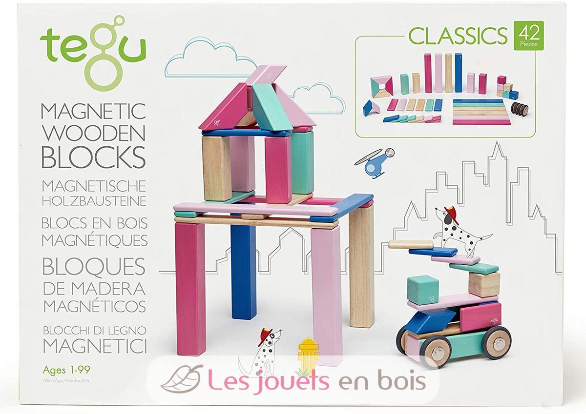 Questo set da 42 pezzi fa parte di una gamma di blocchi e cubi magnetici in legno del marchio Tegu. Questo set permette di realizzare creazioni giganti! È disponibile in 6 diversi assortimenti di colori.