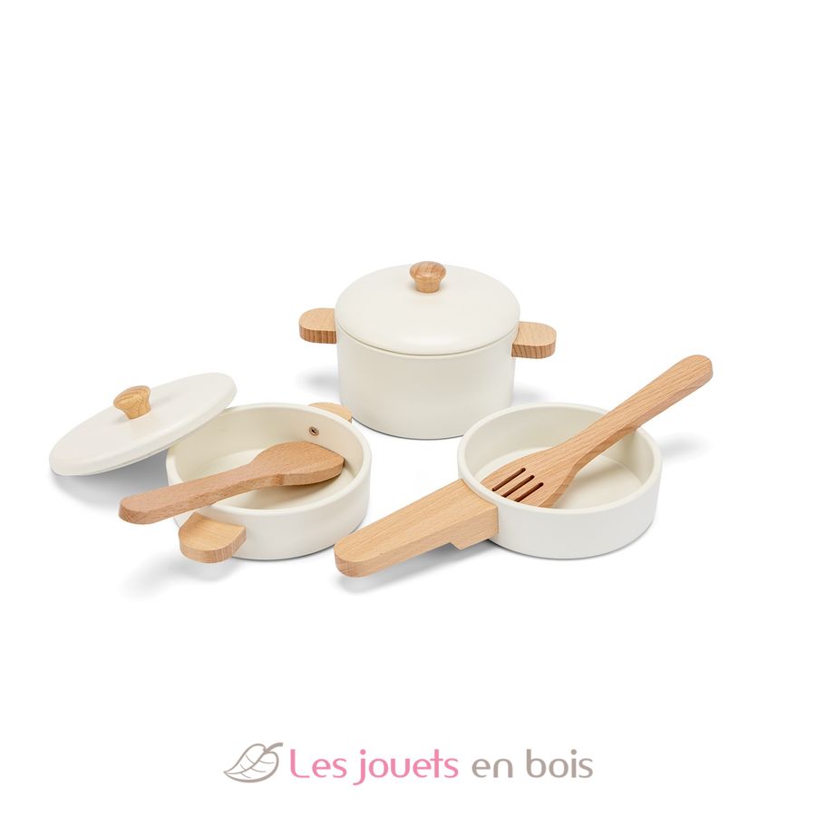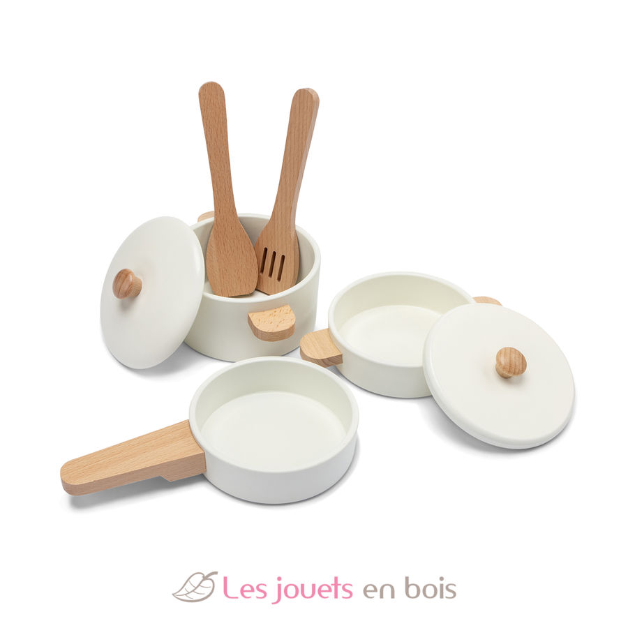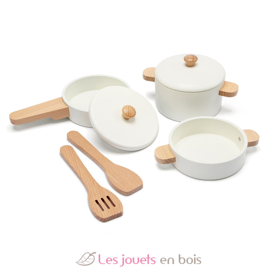 Questo set di pentole in legno è l'aggiunta perfetta alla cucina di ogni bambino. Questo set da gioco da 7 pezzi è composto da una casseruola con coperchio, una padella, una pentola con coperchio. Il set include anche due utensili di legno, così i più piccoli potranno mescolare i piatti mentre cucinano.