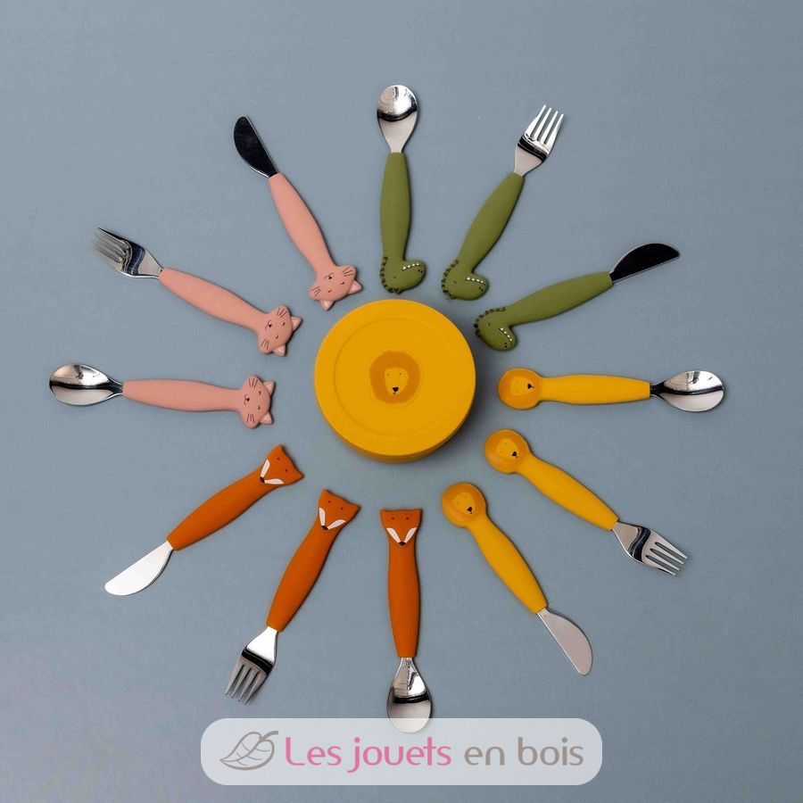 Questo set di posate da 3 pezzi (forchetta, cucchiaio e coltello) è stato appositamente progettato per bambini dai 12 mesi in su.