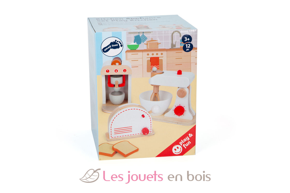 Gli amati utensili da cucina in un set completo! Questo set di utensili da cucina con tostapane, caffettiera e frullatore offre tutto ciò che serve in una cucina per bambini ben attrezzata. Gli apparecchi in legno stimolano il gioco di ruolo attivo e hanno funzioni speciali che rendono il gioco particolarmente realistico. Oltre ai rumori di clic delle manopole, il tostapane ha una funzione pop-up che fa saltare il toast pronto fuori dal tostapane. Lo spattitore è girevole e pieghevole.