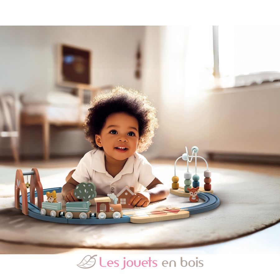 Set ferroviario multiattività, un giocattolo in legno di Speedy Monkey.