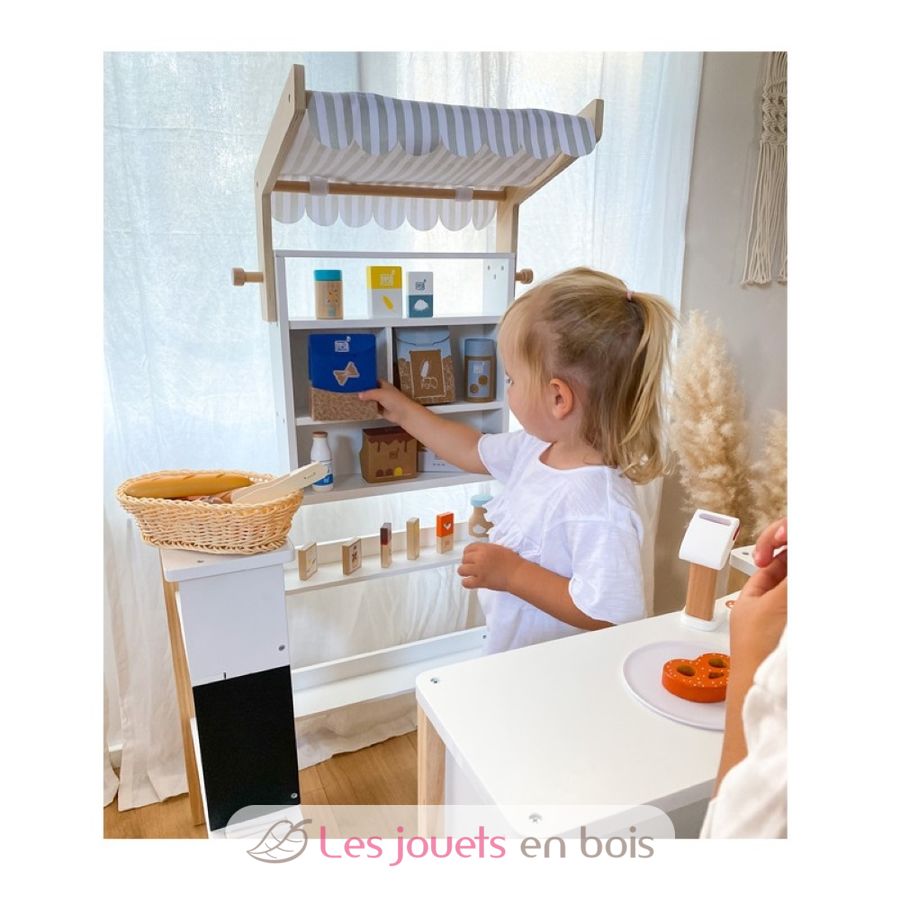 Nell'ambito del gioco di ruolo attivo, i bambini possono prima comprare il cibo direttamente presso il negozietto di alimentari per poi riempire il frigorifero della loro cucina da gioco. Grazie alle illustrazioni chiare e comprensibili sulla confezione non è necessario alcun testo, affinchè anche i più piccoli possano giocarvi.
