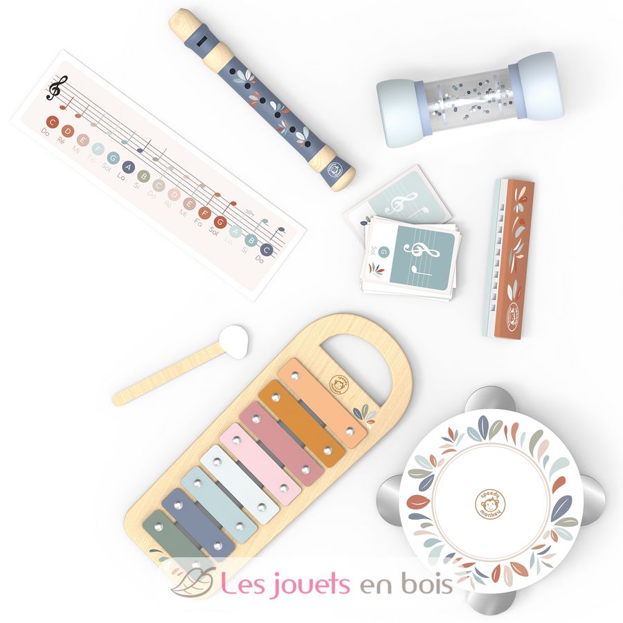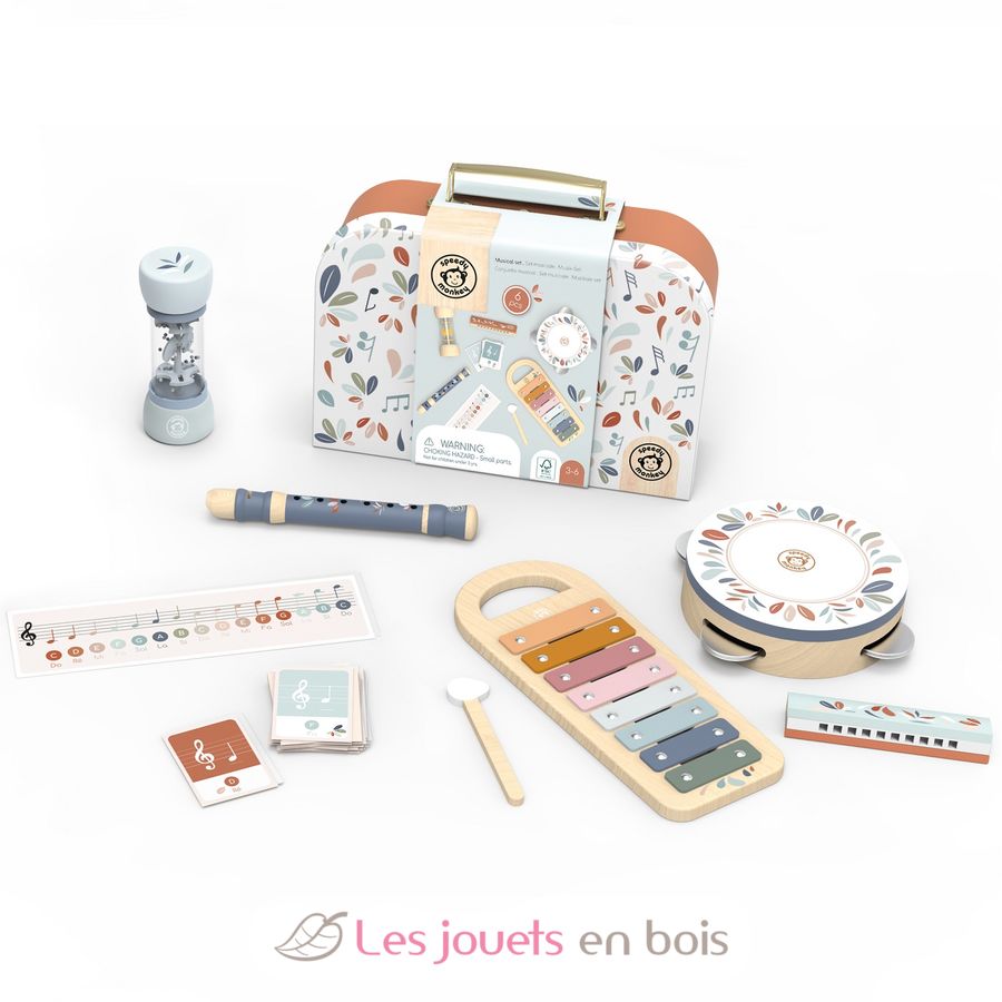 Set musicale con 5 strumenti, un set di giocattoli musicali in legno per bambini del marchio Speedy Monkey.