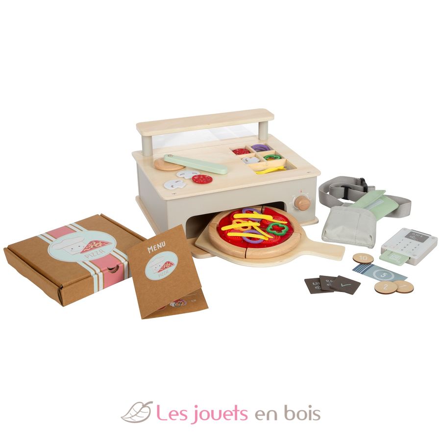 Cuocere e vendere la pizza come un vero professionista con questo set per il gioco di ruolo del pizzaiolo! Il forno per la pizza in legno robusto è un forno per pizza, bancone per le scorte e bancone di vendita allo stesso tempo e offre pratici scomparti per gli ingredienti per la pizza.