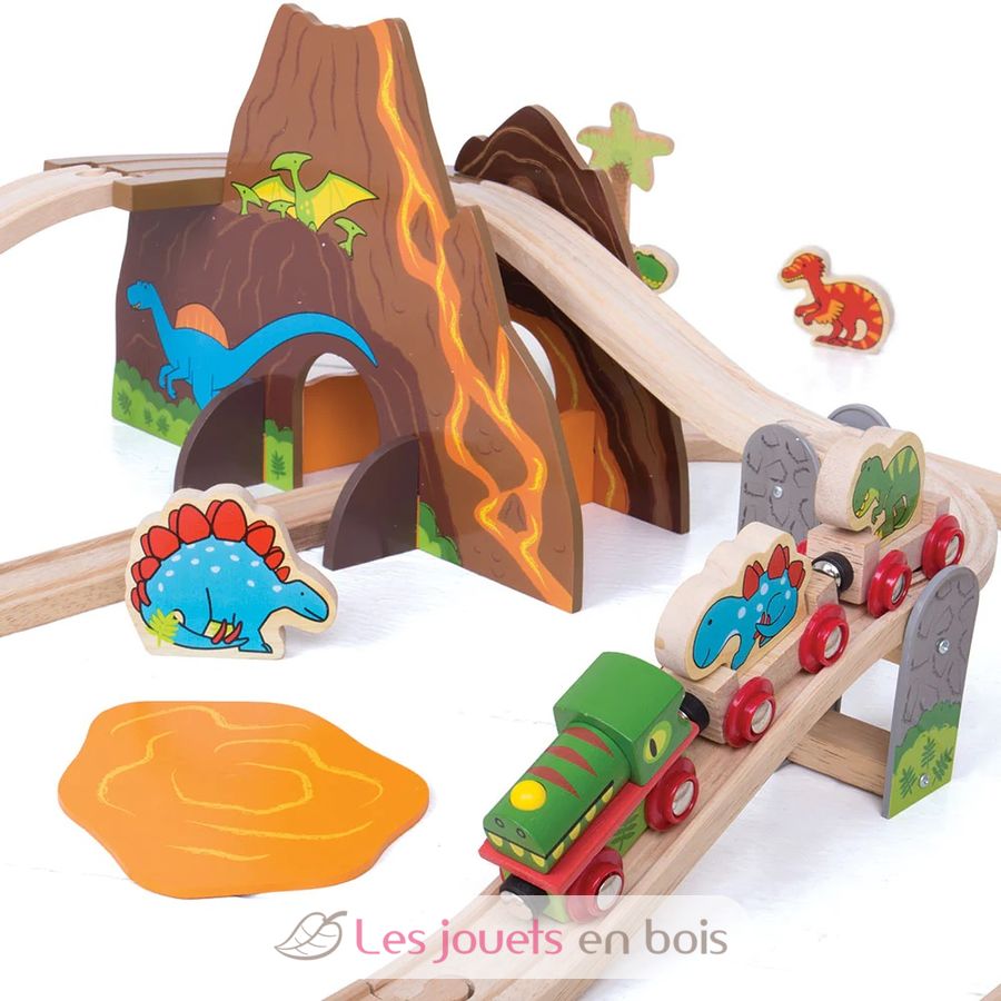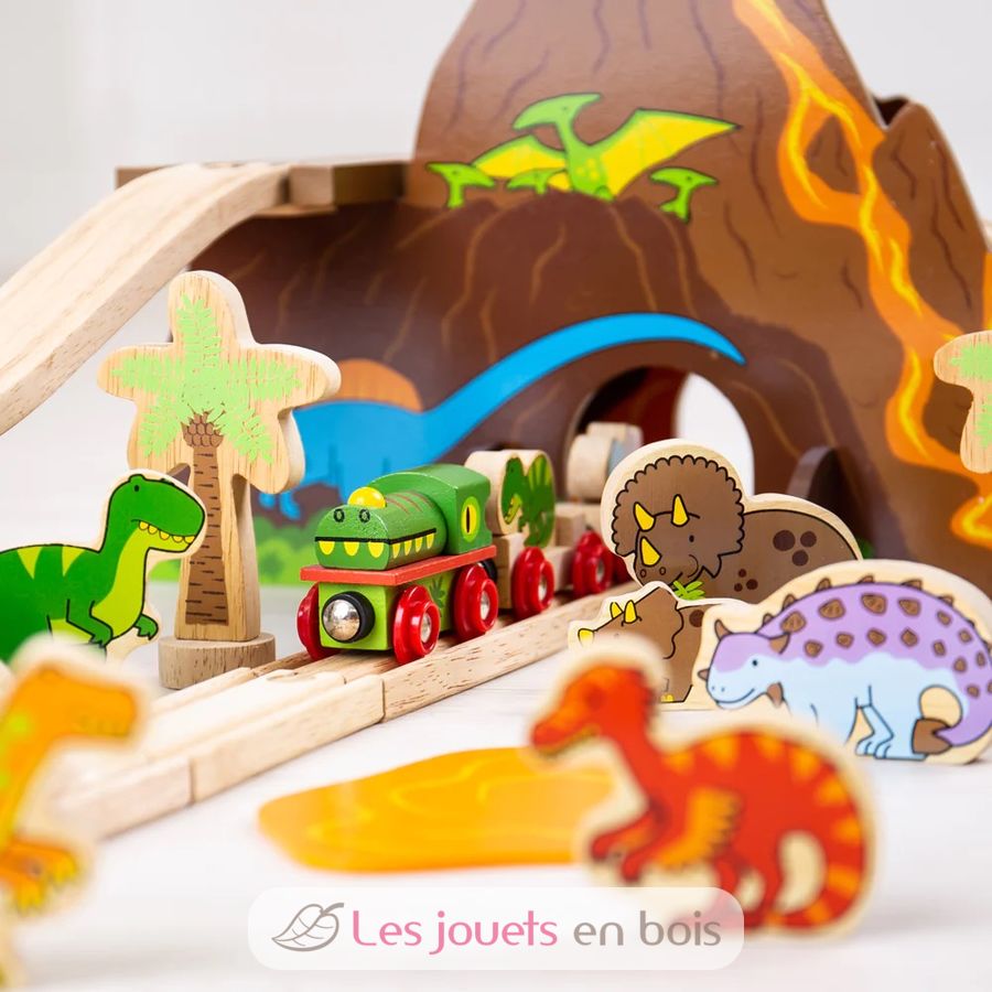 Set Trenino Dinosauri. Comprende 49 pezzi in legno.