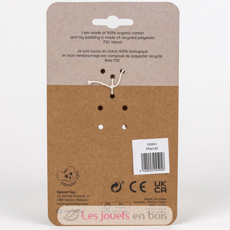 Appeso all'anello di legno, Marcel l'orso è realizzato in cotone biologico e poliestere riciclato.