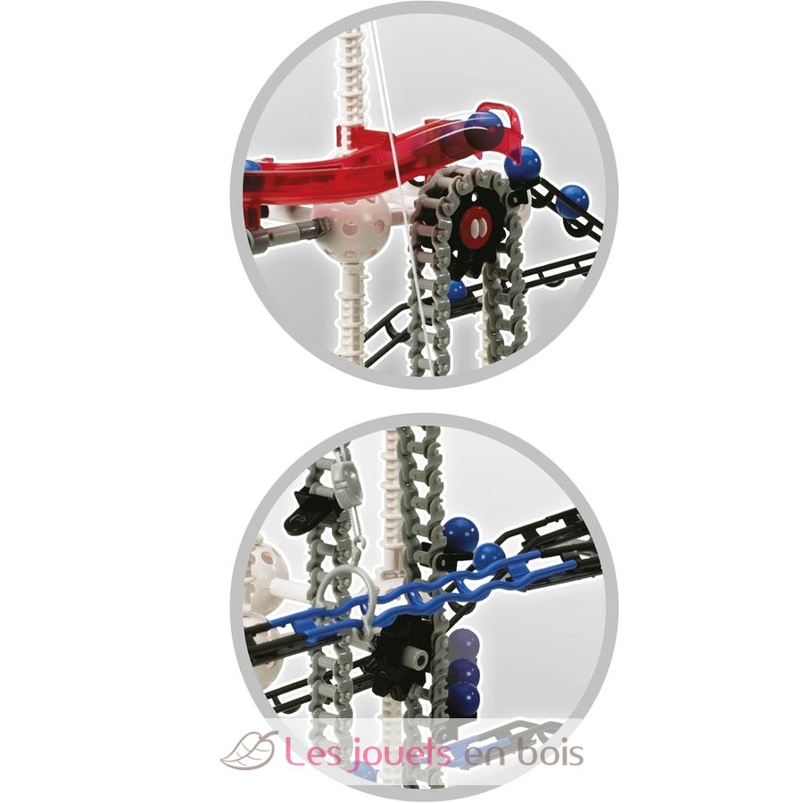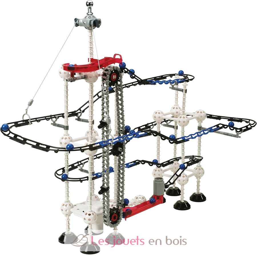 Questa pista di biglie di plastica da 270 pezzi viene fornita con 20 biglie. Un ascensore che permette alle biglie di raggiungere facilmente la cima del labirinto costruito.