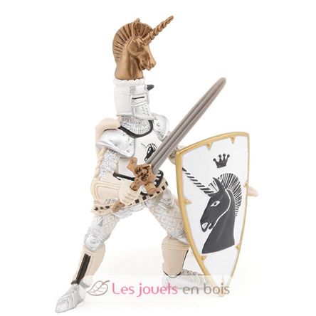 Sul suo cavallo, il maestro d'armi con lo stemma dell'unicorno va in battaglia, armato per affrontare il nemico. Vestito con la cotta di maglia, l'armatura e il superbo elmo crestato, ha indossato il maestoso mantello bianco e argento. È armato di spada e scudo con il suo emblema: un unicorno, simbolo di potere e purezza. Il suo cavallo è stato preparato a lungo e indossa una gualdrappa che lo protegge dai colpi nemici. La testa di un unicorno è posta sul ponte del naso, mentre uno scudo protegge il petto. Formano una coppia potente per combattere i fantastici cavalieri.