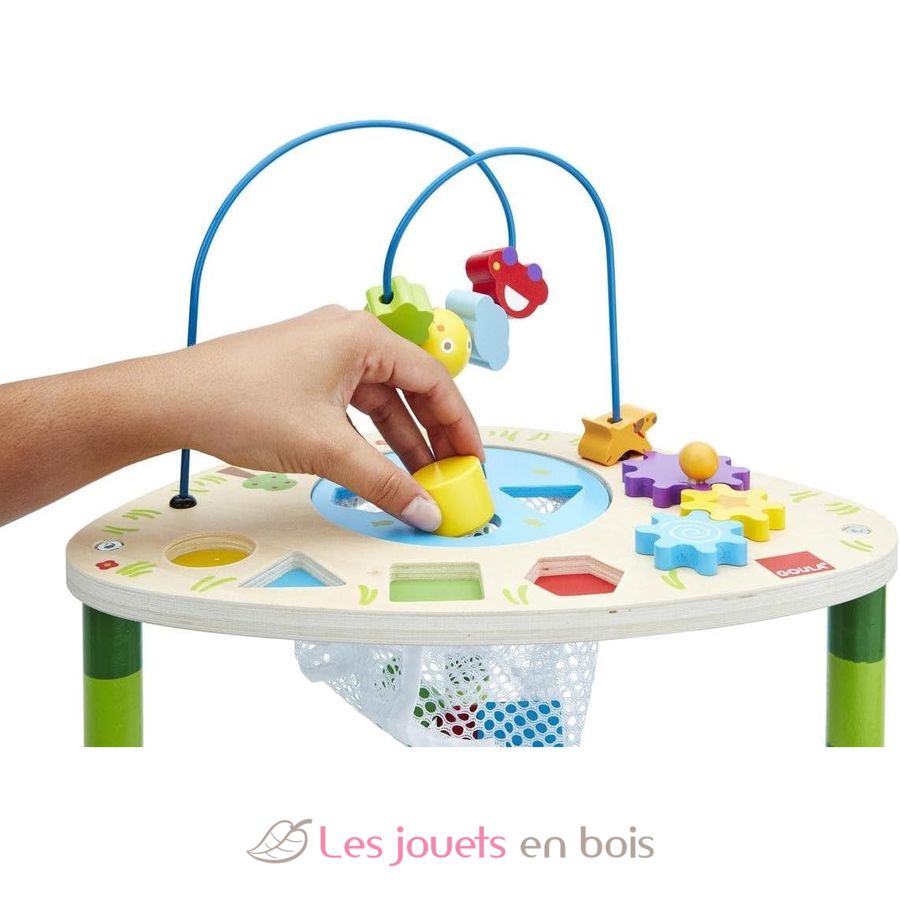 Questo tavolo attività in legno è composto da pezzi che girano, scattano, cadono, scivolano... Tutti con colori vivaci che attirano l'attenzione del bambino.