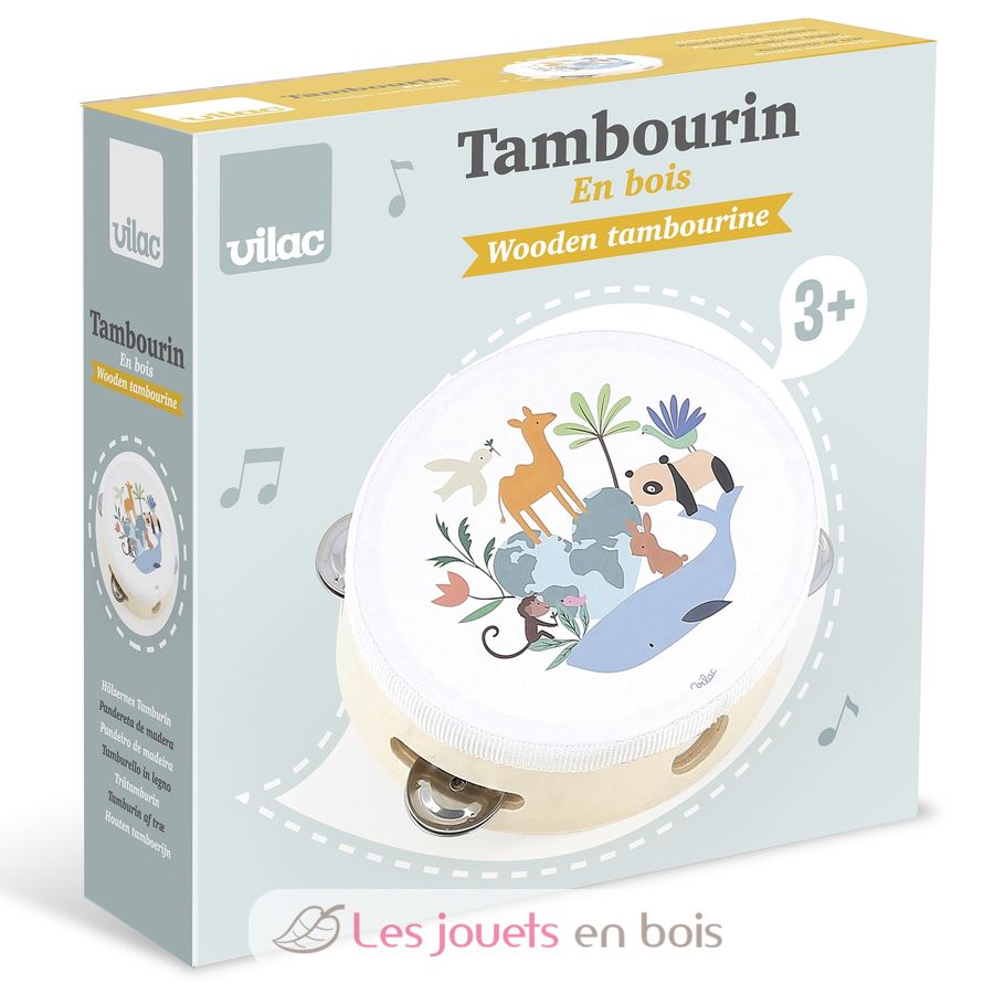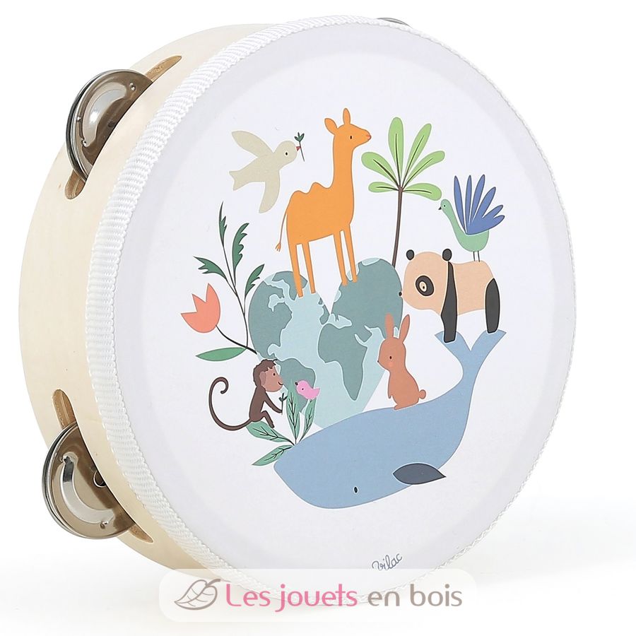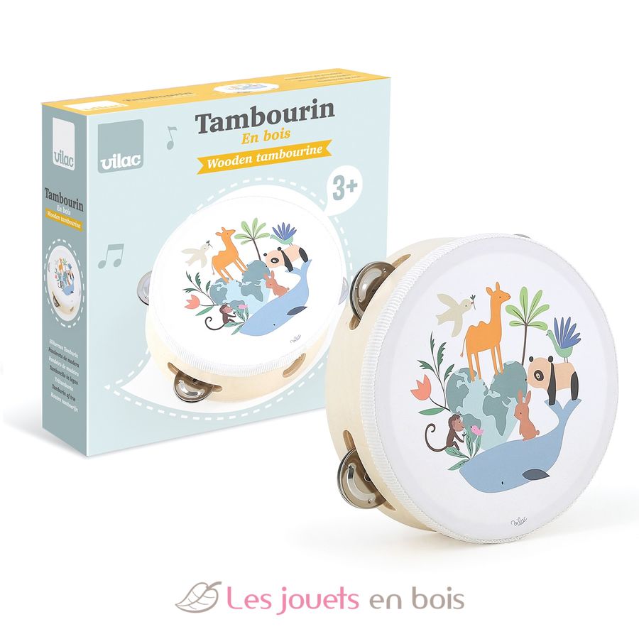 Tamburello animali del mondo Sarah Betz, un giocattolo musicale per bambini di Vilac. Riferimento 7112.