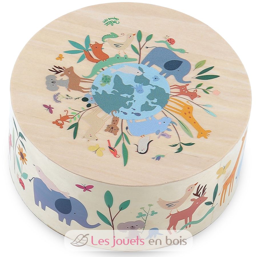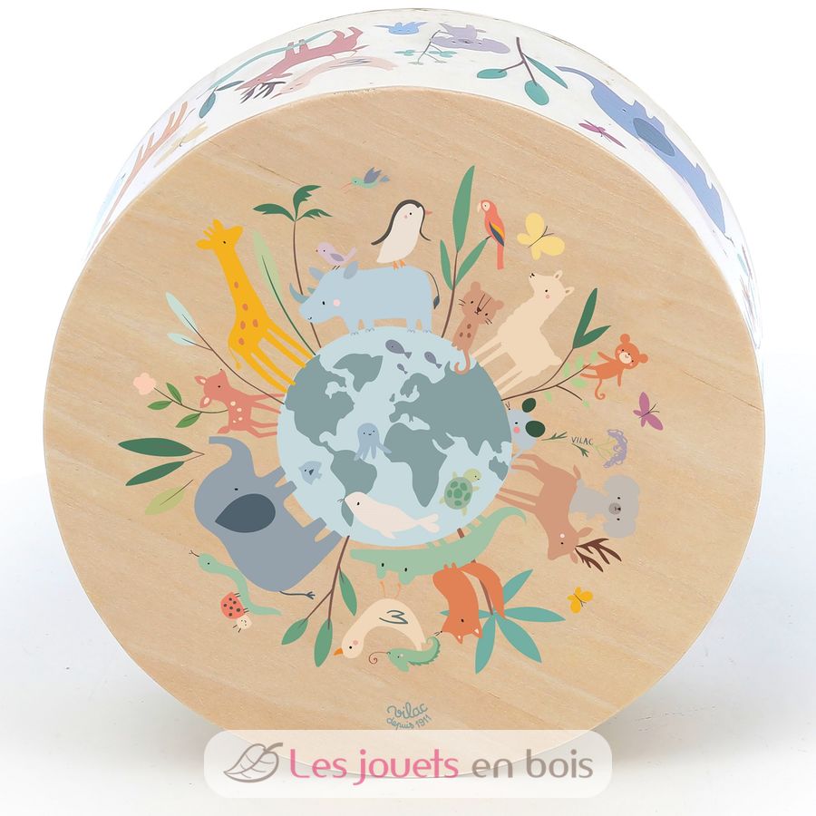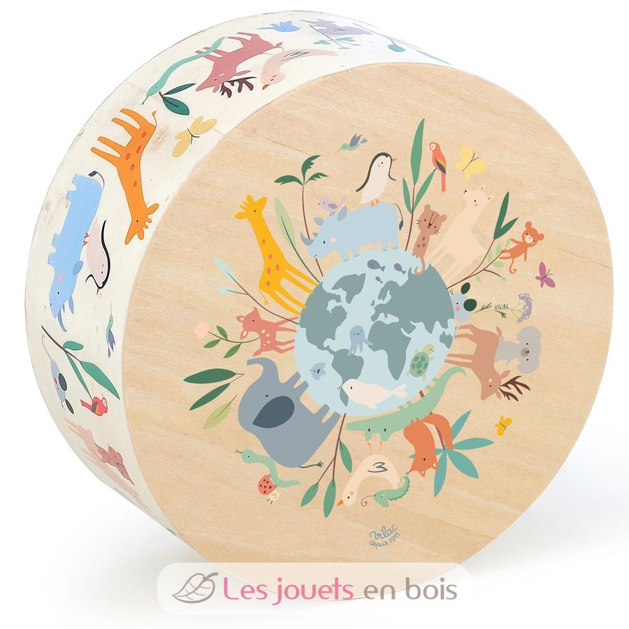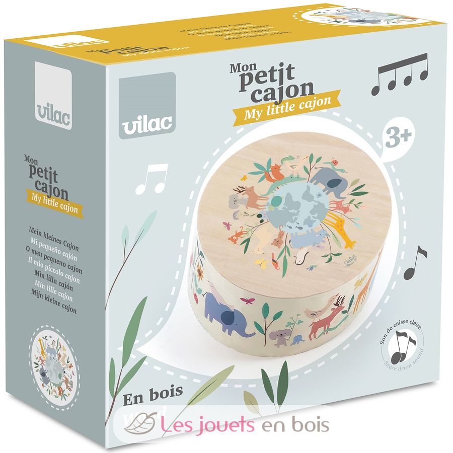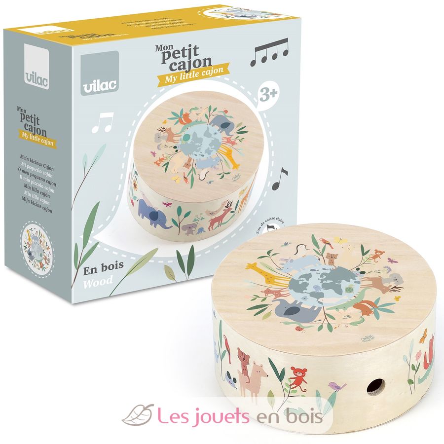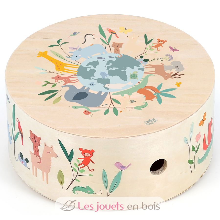 Tamburo cajon animali del mondo Sarah Betz, un giocattolo musicale per bambini di Vilac. Riferimento 7113.