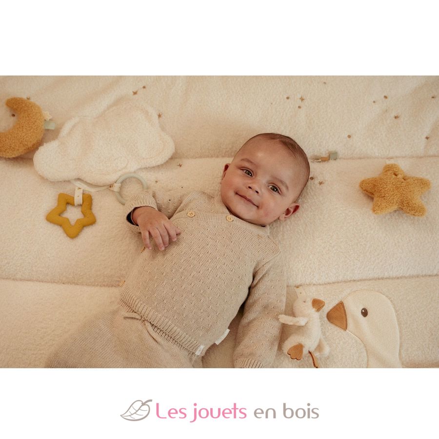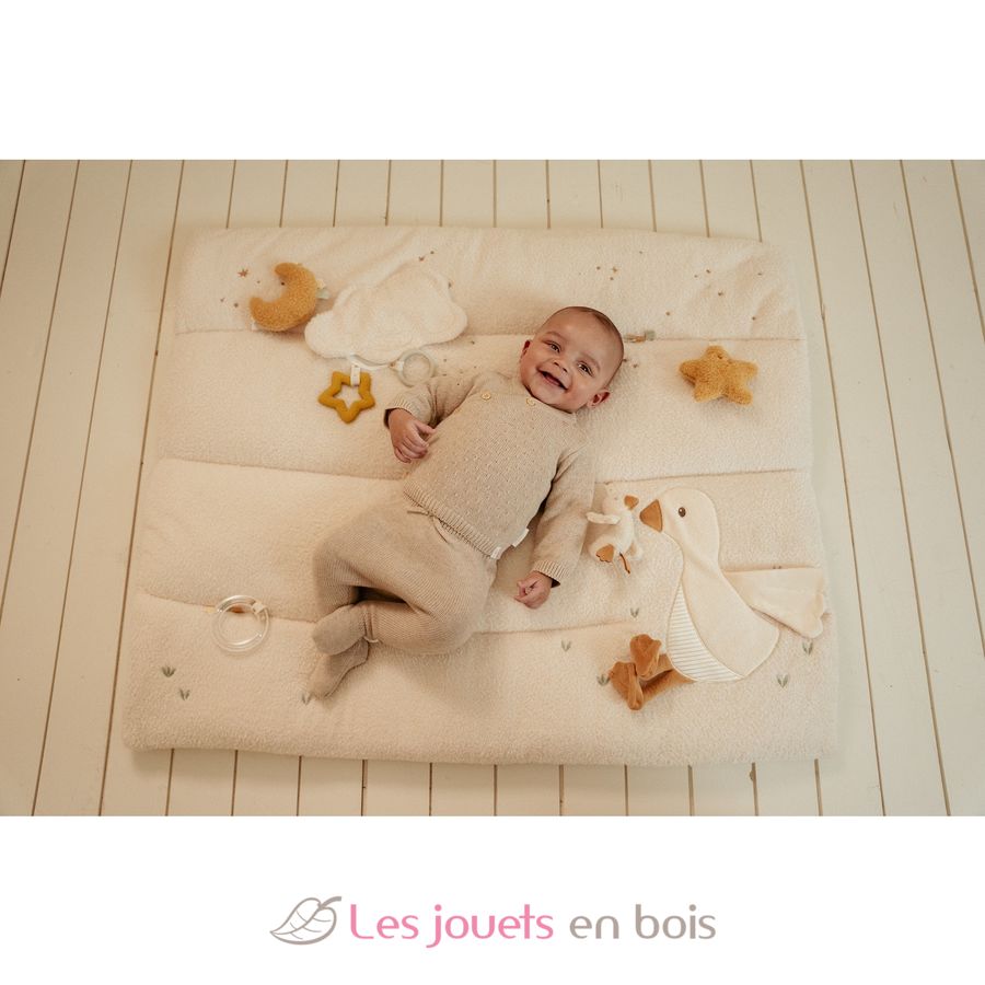 Questo tappetino attività trapuntato, della collezione Newborn Naturals di Little Dutch, è uno spazio morbido per i piccoli esploratori. I neonati potranno scoprire diverse texture e attività, come un piccolo specchio, un sonaglio e un anello per la dentizione.