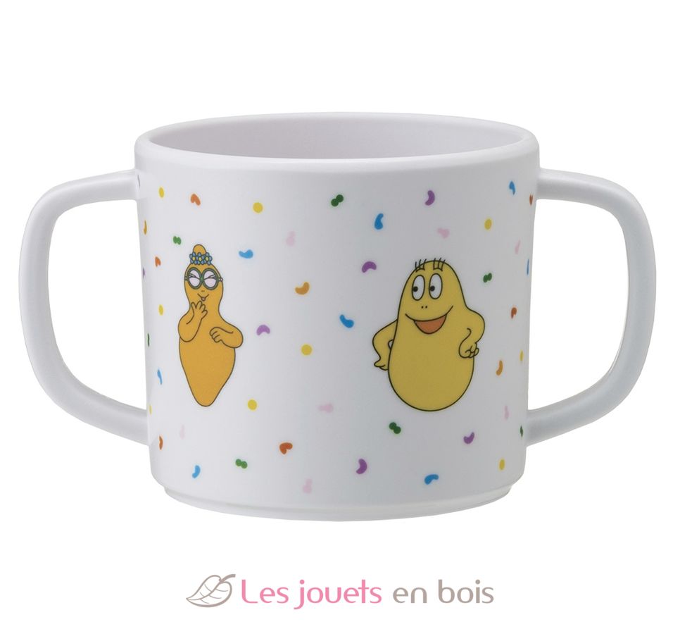Tazza a due manici con beccuccio estraibile Barbapapà per bambini del marchio Petit Jour.