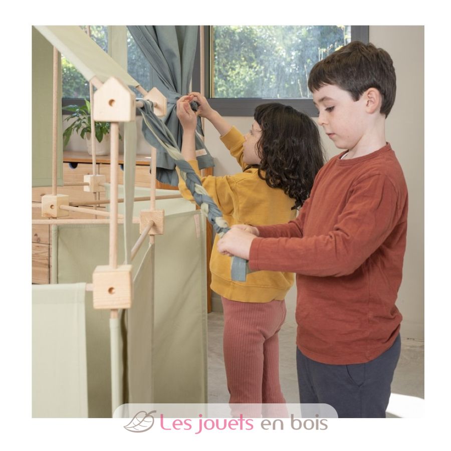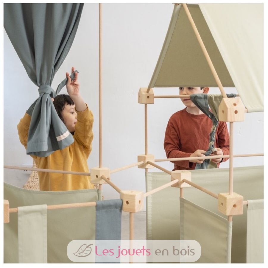 Il Trigonos è un gioco di costruzioni educativo gigante, composto da pezzi di stoffa, cubi da unire e bastoncini di legno. Stimola la curiosità, la creatività e la concentrazione: le sue possibilità creative sono infinite! E quasi senza rendersene conto, i bambini imparano concetti di base di geometria, matematica e fisica.
