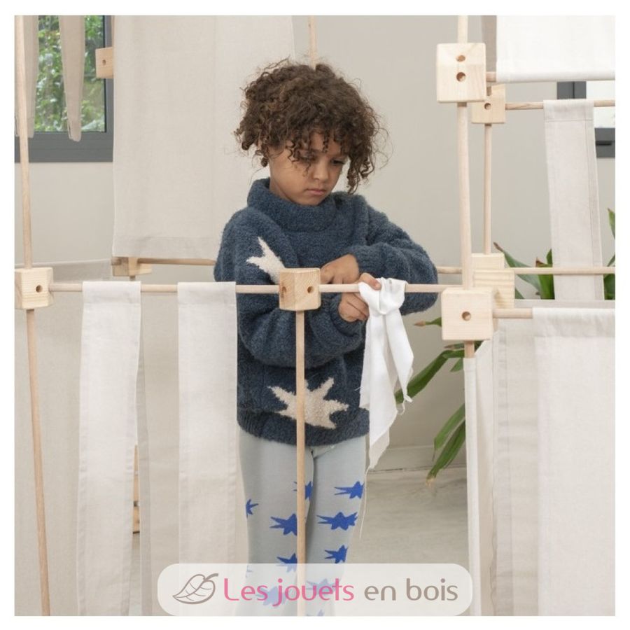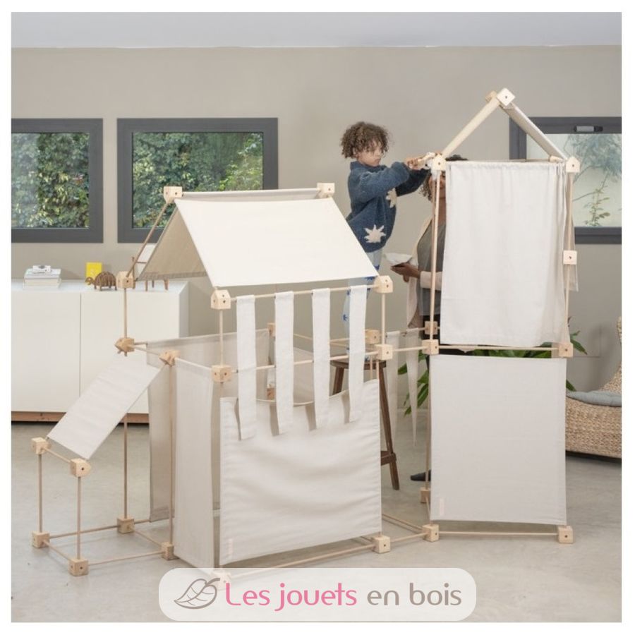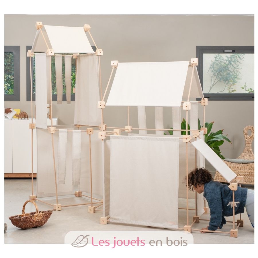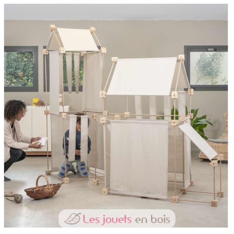 Il Trigonos è un gioco di costruzioni educativo gigante, composto da pezzi di stoffa, cubi da unire e bastoncini di legno. Stimola la curiosità, la creatività e la concentrazione: le sue possibilità creative sono infinite! E quasi senza rendersene conto, i bambini imparano concetti di base di geometria, matematica e fisica.