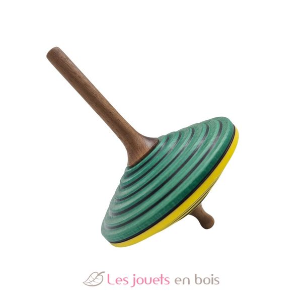 Trottola in legno Tukan verde scuro giallo 75 mm (venduta singolarmente).