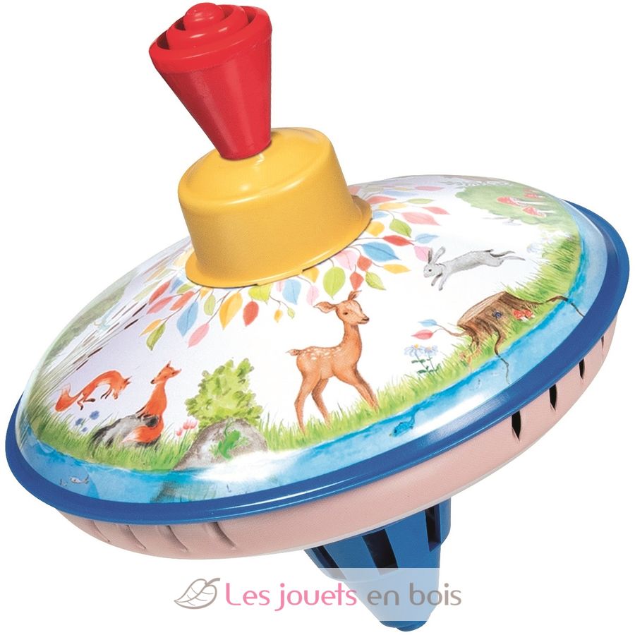 Piccola trottola in metallo. Diametro di 12,8 cm. Basta premere la maniglia per avviare il movimento: la trottola gira su se stessa e vibra delicatamente. Questo giocattolo consente di allenare anche le abilità motorie dei più piccoli.