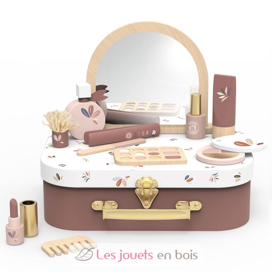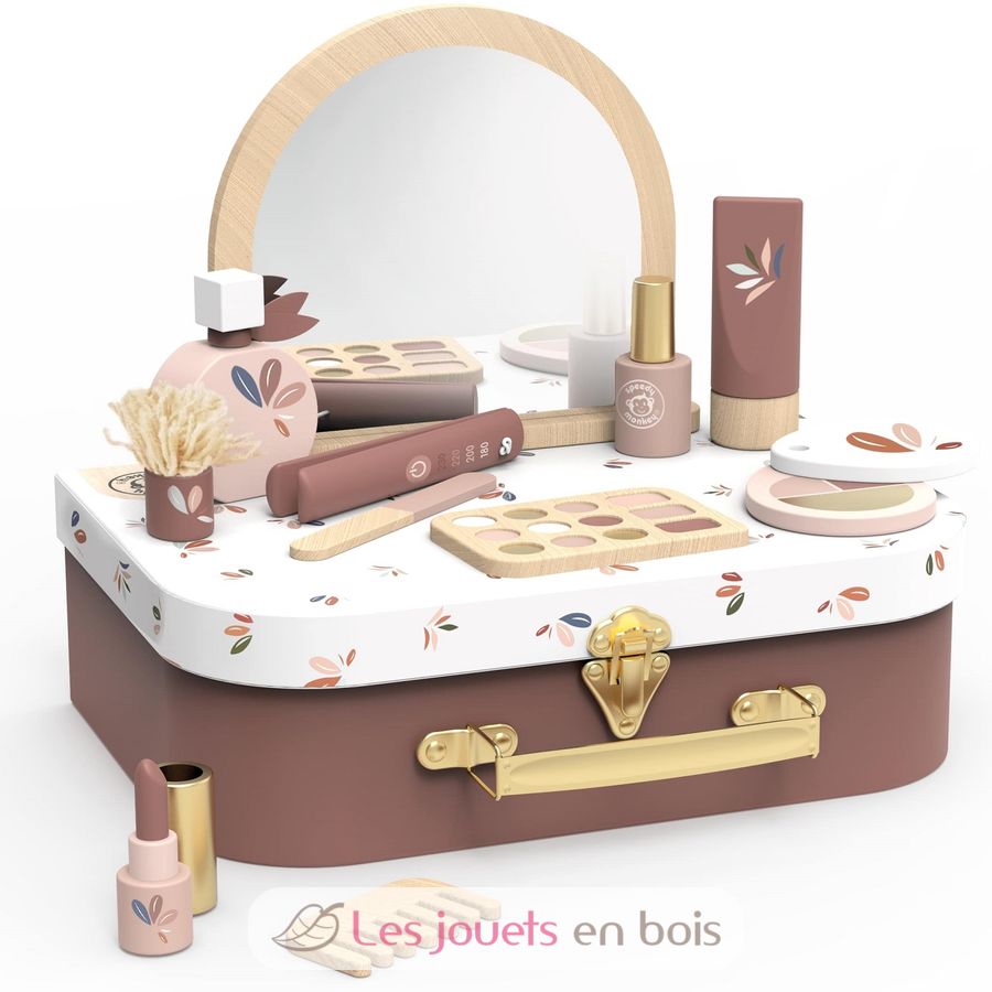 La valigetta si apre per rivelare una colorata collezione di 12 accessori di bellezza in legno, perfetti per imitare le routine degli adulti in modo divertente, sicuro e senza schermi. Dal trucco finto agli strumenti per capelli, ogni pezzo è progettato con cura per essere impugnato dalle manine dei più piccoli, contribuendo a stimolare le capacità motorie fini, il gioco di fantasia e l'interazione sociale.
