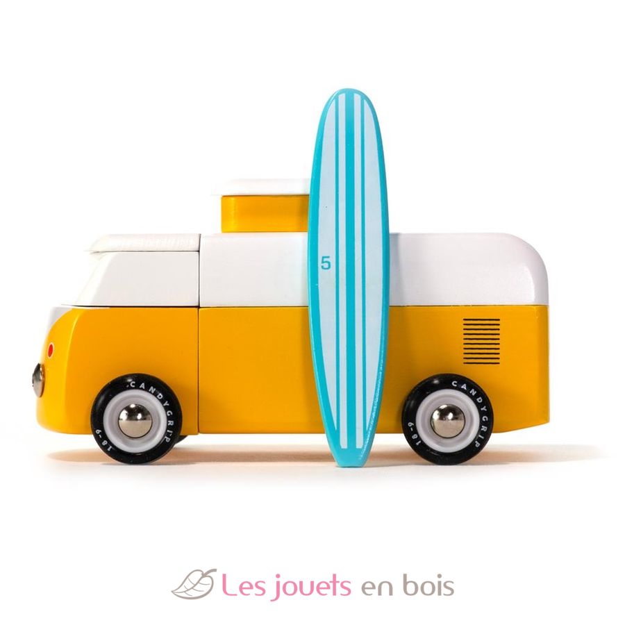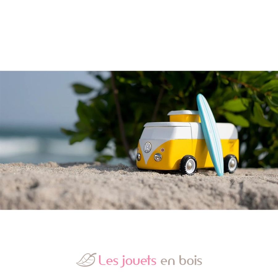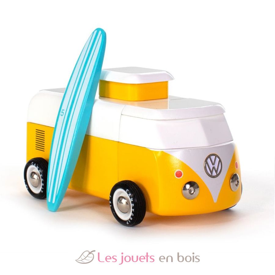 VW Beach Bus giallo, un veicolo in legno di Candylab.