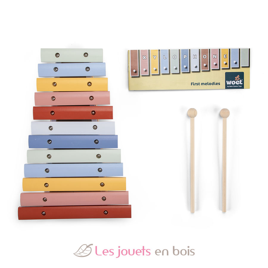 Silofono in legno colorato per bambini di Woet by New Classic Toys.